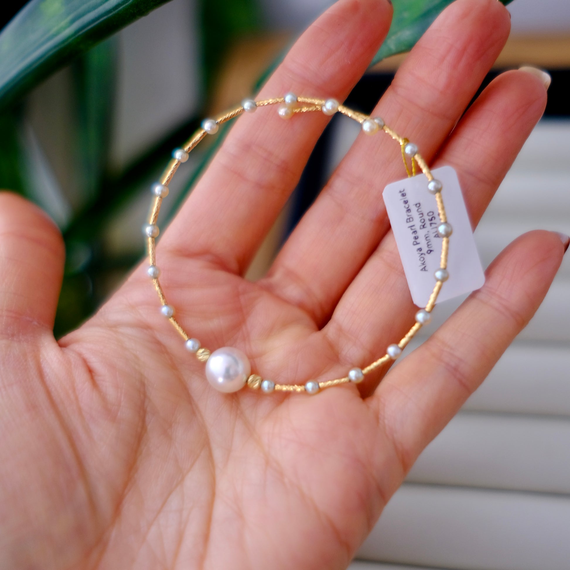 Akoya, 9mm, Elastic Pearl Bracelet, AU750