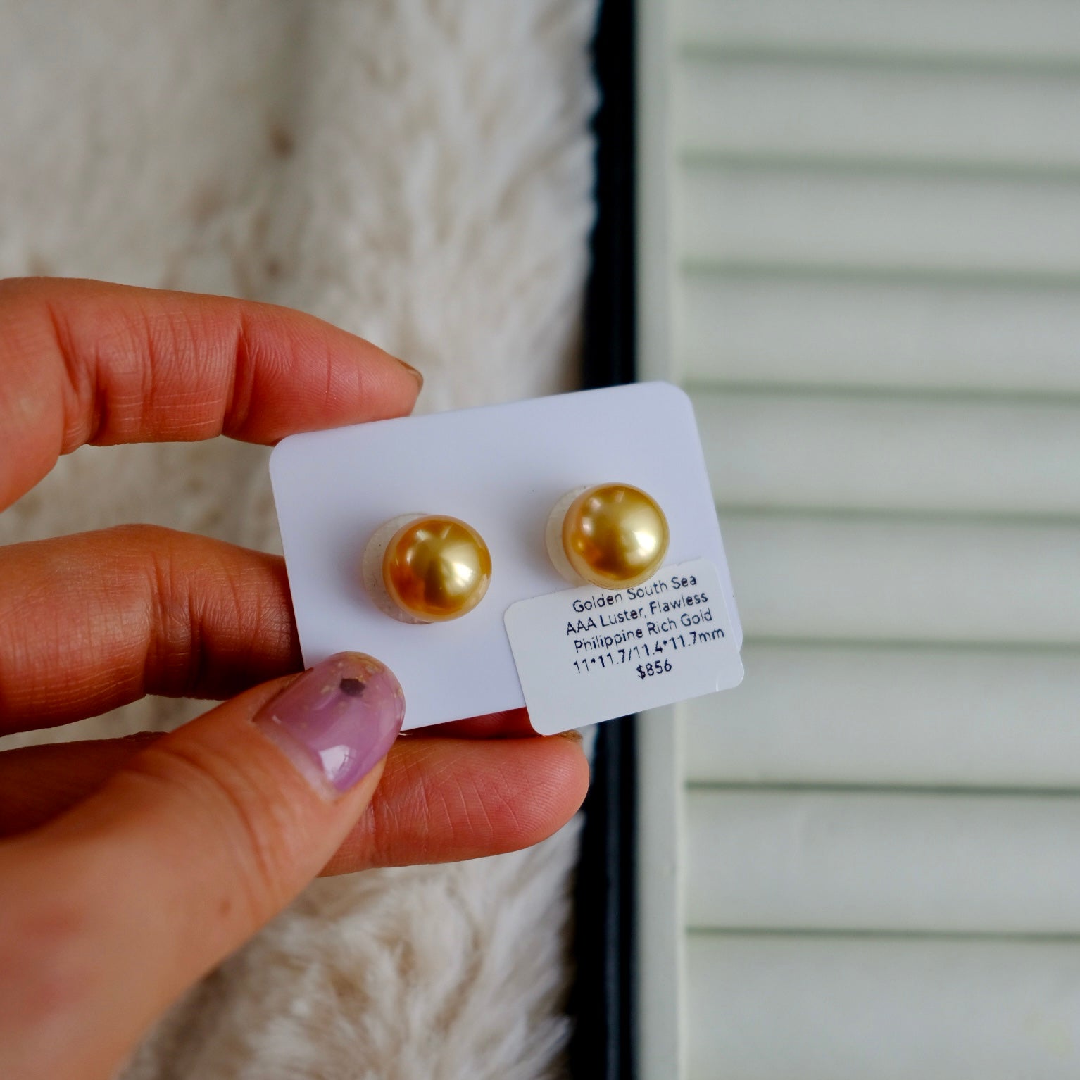 Golden South Sea Pair, Loose Pearl, Near Round, Rich Gold, 11*11.7/11.4*11.7mm