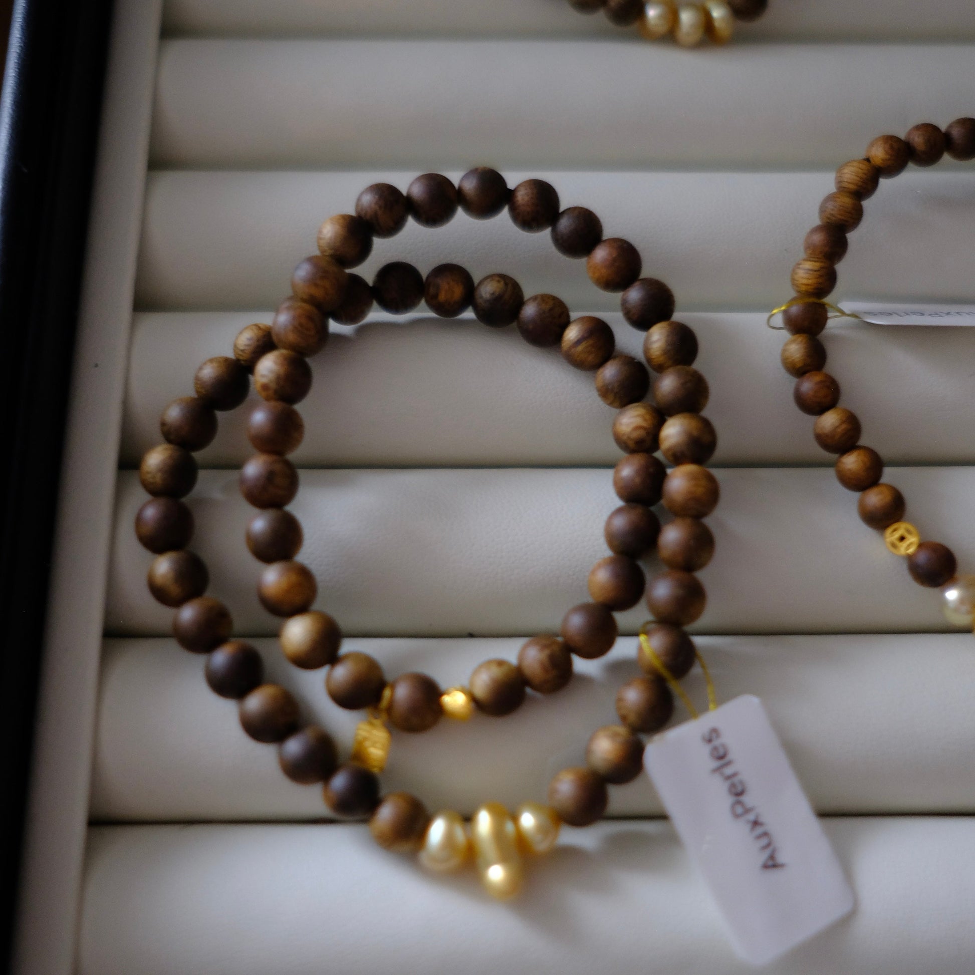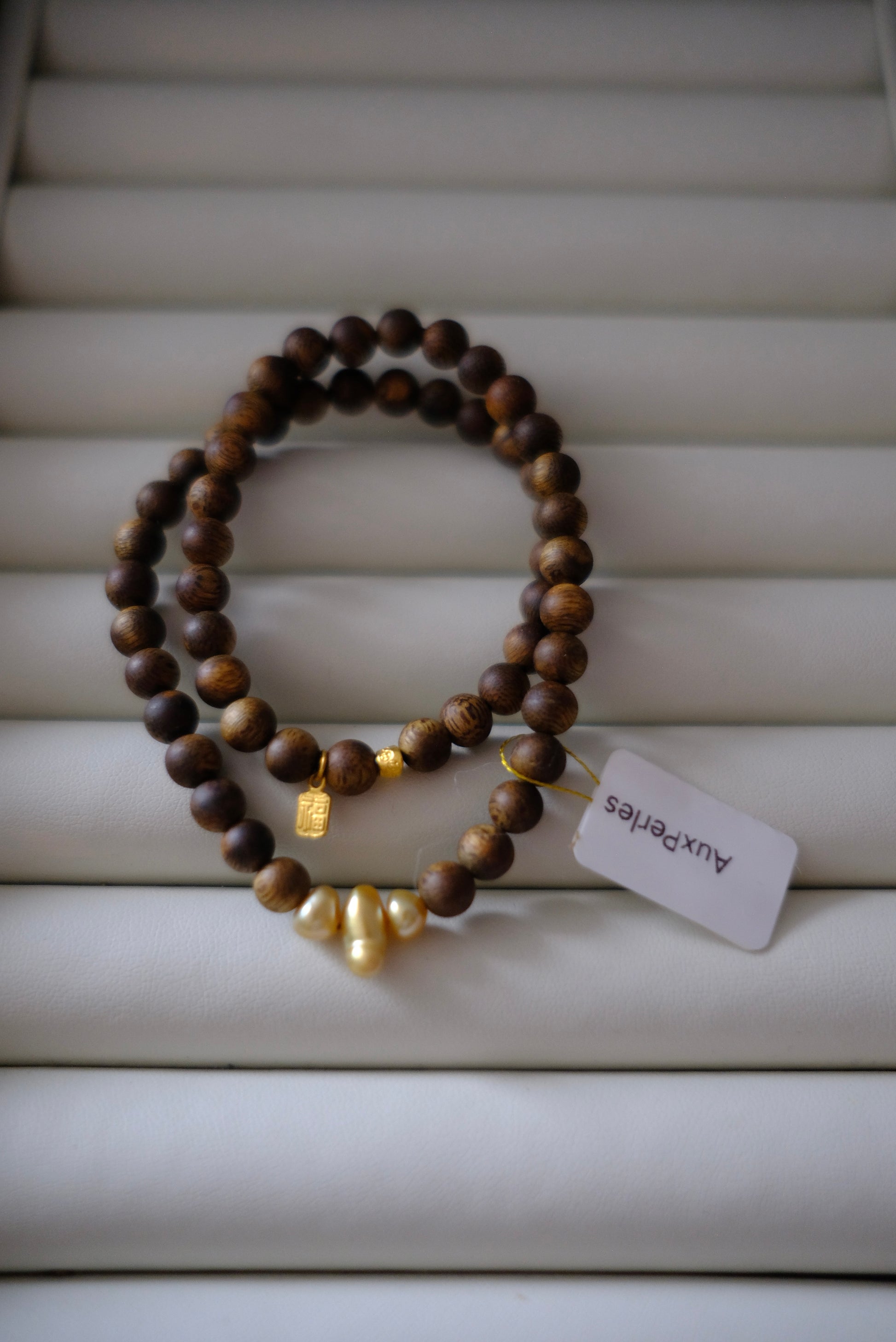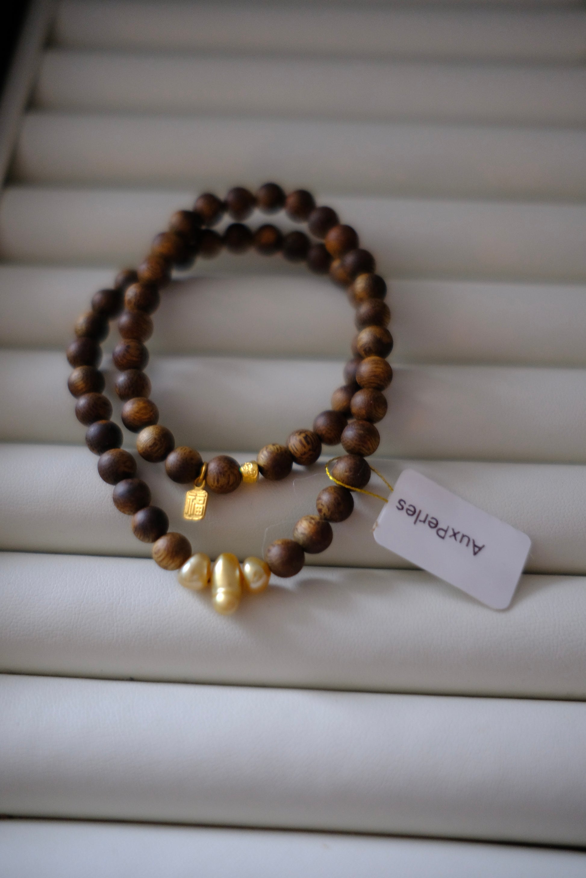 Golden South Sea Pearl Bracelet, Keshi, Qinan Agarwood 5mm, AU999,