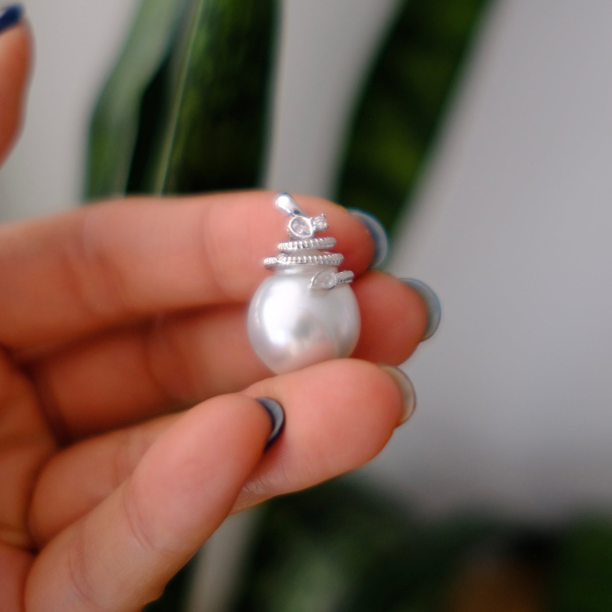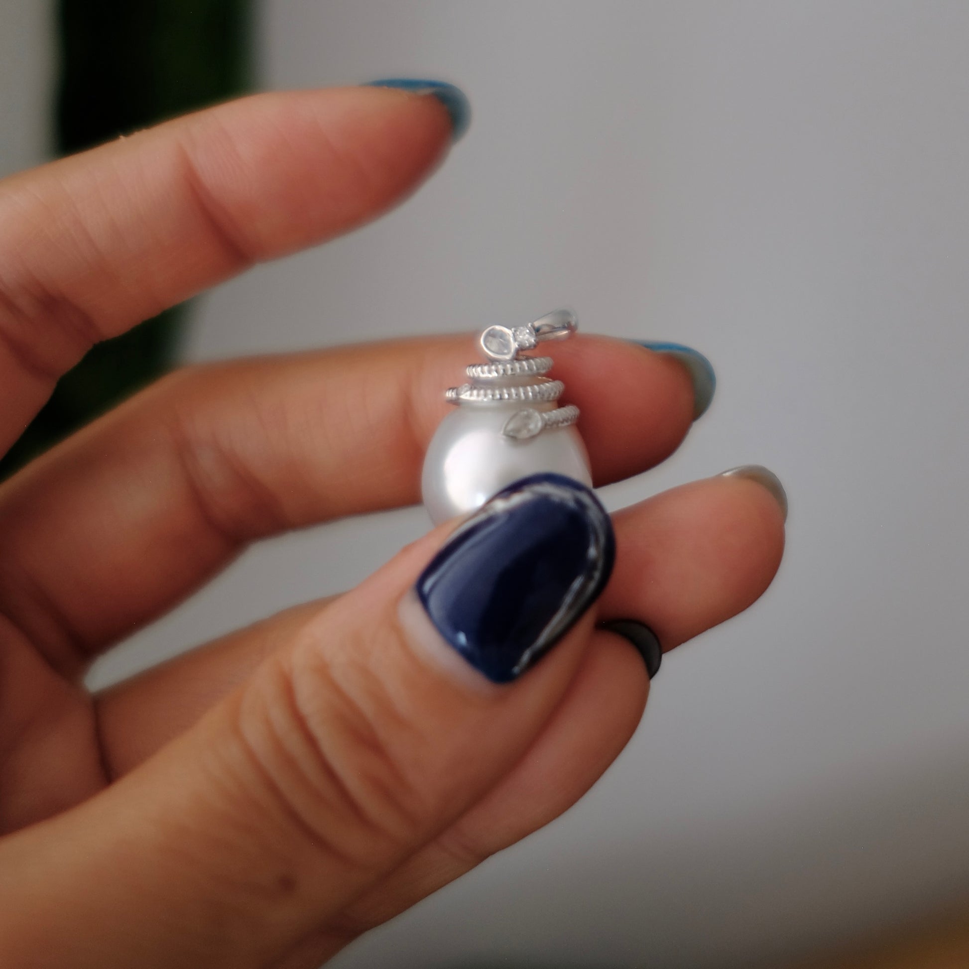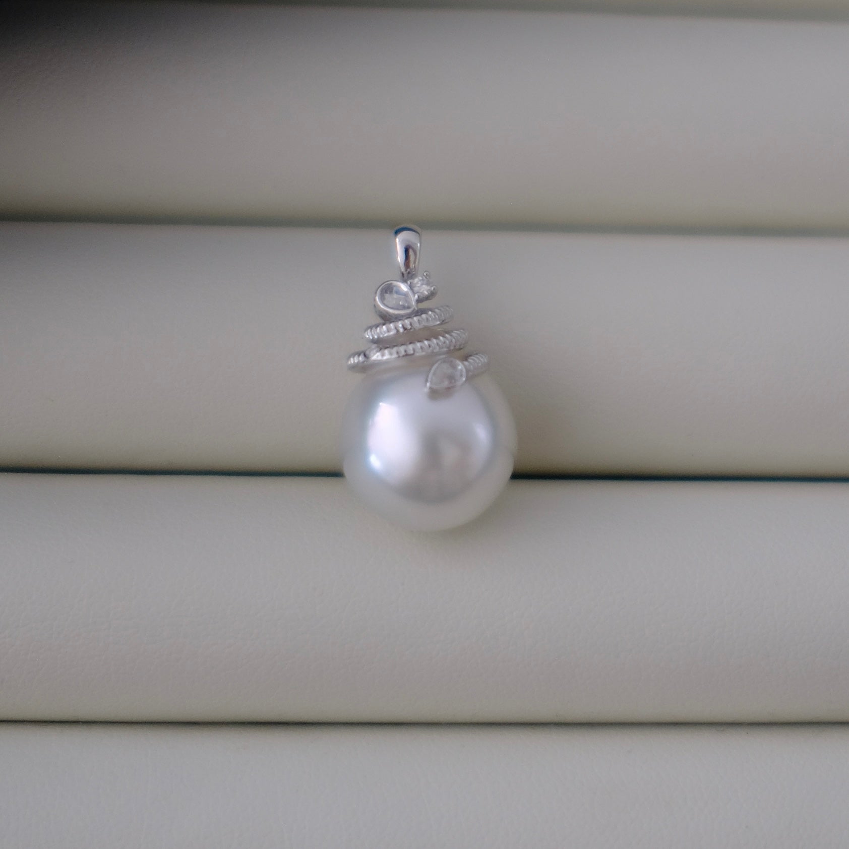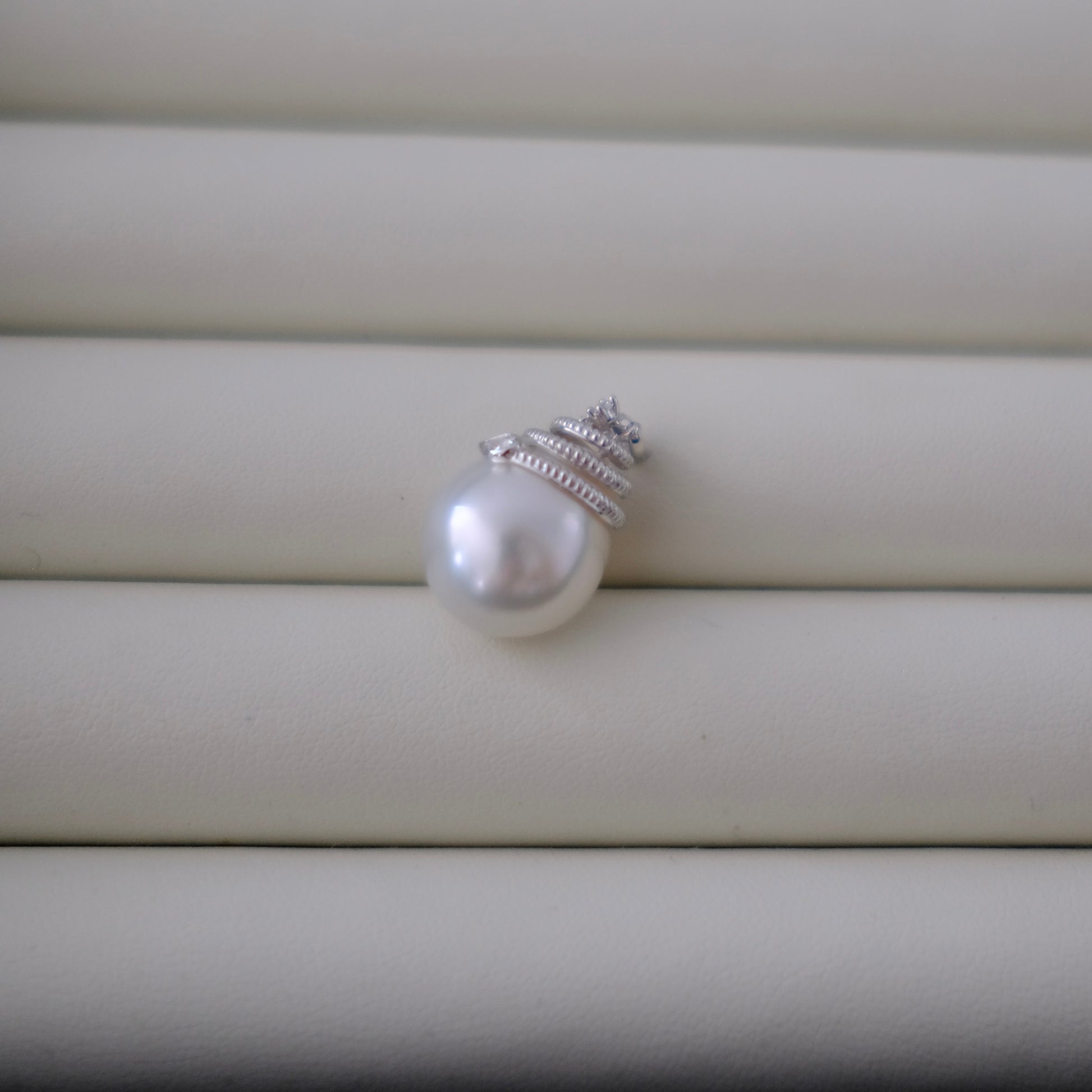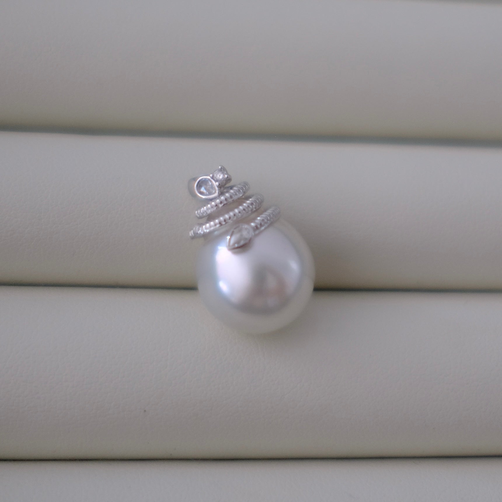 White South Sea Pearl Pendant, DT 14.3*16.7mm, AU750 Diamond 0.088ct, PASPALEY